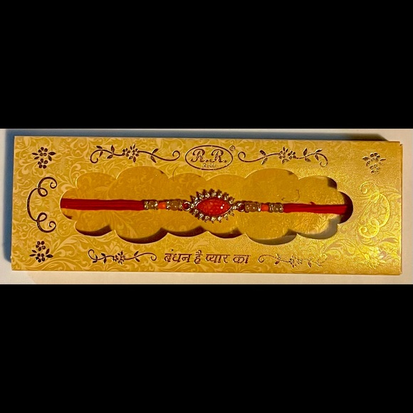 On this Raksha Bandhan, Bless your brother with love in the form of this beautiful hand crafted gold-toned ,studded, classic designer Rakhi.
