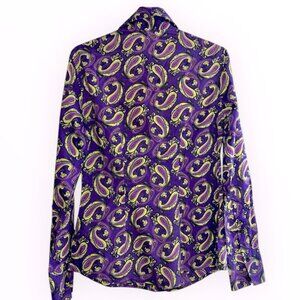 Designer Hawes & Curtis London Purple Paisley print collar Button Down blouse 2