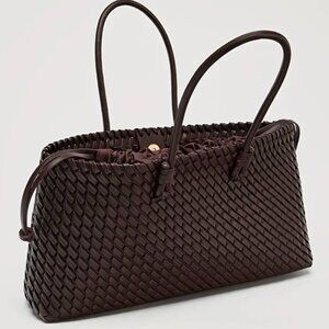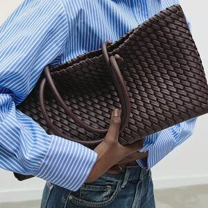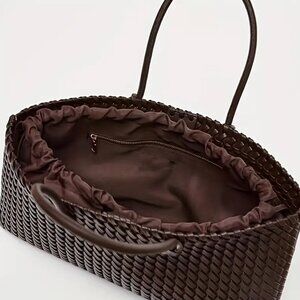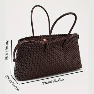 Designer Inspired Brown Woven East-West Style Shoulder Tote HandBag Work Travel