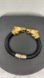 The body of the bracelet is a smooth, glossy black lucite material, providing a fantastic high-contrast look against the gold-tone heads.