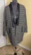Stylish black and white striped coat featuring sleek leather trim. Perfect for a chic look.