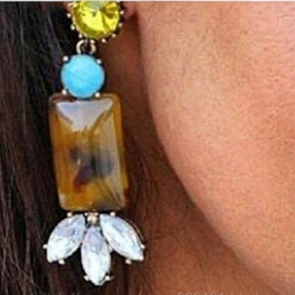 Designer J.Crew Gold-tone Multicolor Crystal Cut Stone Dangle/drop Earrings.