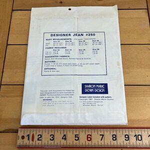 Designer Jeans Sewing Pattern #250 for ladies sizes 32-34-36-38. By Sharon Marie Denim Design (1981). Sewing pattern is new/uncut (envelope is partially open).