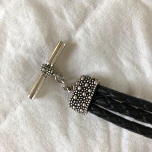 Authentic Michael Dawkins black braided leather toggle bracelet.
