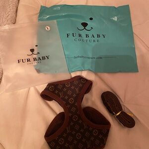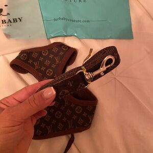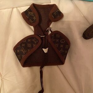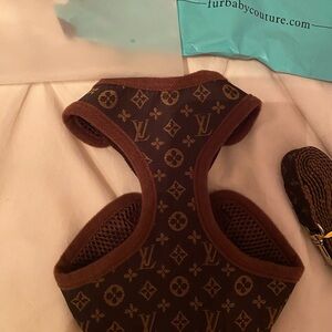 Stylish pet harness with LV iconic pattern. Brand new never worn. Comes with harness and leash. To big for my toy poodle. Purchased from Furbaby couture website.