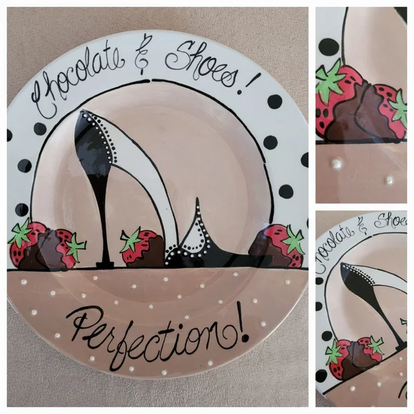 Fabulous gift or keep safe for any woman that loves chocolate and shoes one of a kind piece by Carrie root ham painted 9" in diameter no cracks or chips