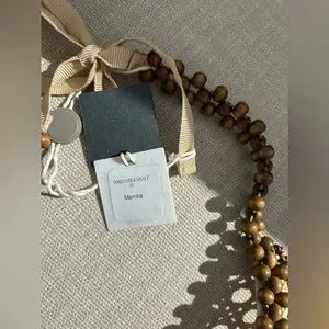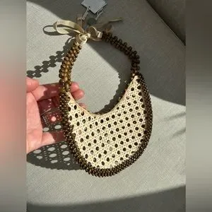 Brand new, with tags. This ROSANTICA visor is SO charming. contrasting applications, two-tone, self-tie closure. Wood, Textile fibers, and completely handmade in Italy. One of a kind.