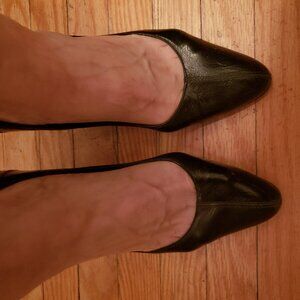 This is a gorgeous patent leather pump with a 4 inch brown heel that has some interesting detailing. Otherwise the shoe is a simple and elegant style. I purchased these at a designer consignment store in Brooklyn, NY just before the pandemic and only wore them once, for a video shoot. They are too big for me (I am 8.5/9) but they almost fit, so I'd say they are closer to a 9 than true 9.5 (Italian size). The outside of the shoe has a few markings, and inside feels broken in but the shoe is in overall between good and very good condition. Similar fall 2024 styles with this brand are being priced for $1050 CAD.