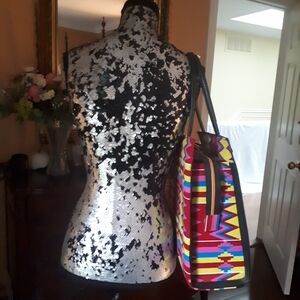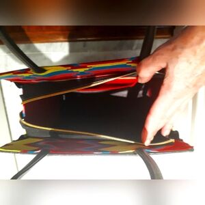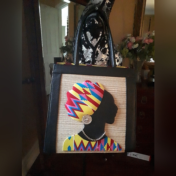 Funky African inspired handbag . Bought at a one of a kind exhibit No one else will likely have anything like it. Zipper closure. Red inner pocket. Pristine.