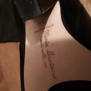 Maria Brotons black leather over the knee boots with leather ties capped in gold which can be tightened as desired at the top of the boot. Comfortable but still stylishly high block heel. Pristine. Never worn. Leather sole. Made in Spain not China. Size 38.