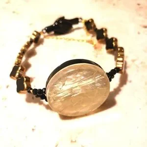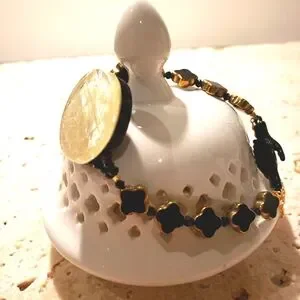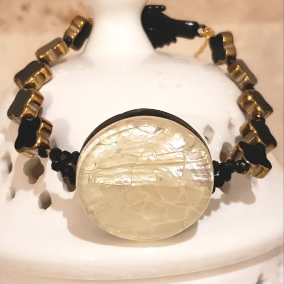 Mother of Pearl, black jet and glass hand-made jlr original design bracelet.