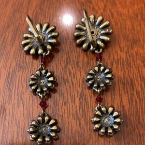 Vintage earrings marked MN I think from style and materials it’s Michal Negrin design. One crystal missing but unnoticeable , reduced price. 2”1/2 long . Light weight absolutely stunning.