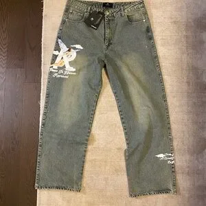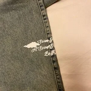 Storms in Heavens jeans. Brand new with tags on. Size L or 34us. Straight/wide leg relaxed fit. Very stylish for an oversized look or fitted . Unfortunately for me it was a bit too big on waist part