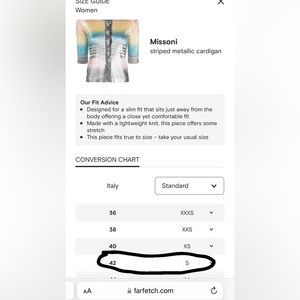 Beautiful Iconic Missoni cardigan. Amazing colour and design knit. It’s size 42IT which is size S us. It’s brand new only tried on. There’s a pull in the back of the neck as shown on the picture but not visible at all especially when wearing it.