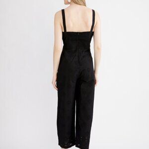 Sleeveless and wide leg, the style's standout features include tribal designs, and cut-out detailing along pant ends and the centre of the look — a sultry focal point that feels fresh and fun. A fitted bodice flares out into a roomy silhouette, giving you a playful design.