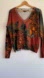 Desigual. Animal print, large cat, cheetah, tiger. Floral. Maximalist. Light knit. 81% viscose, 19% polyamide. Great for layering. V neck sweater. Excellent condition.