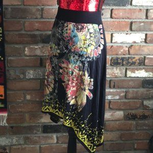 Desigual Embroider Mandala Pasley Floral Asymmetric Cotton Skirt M