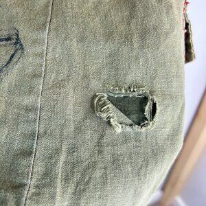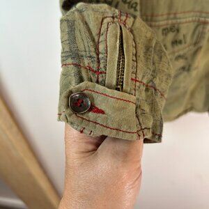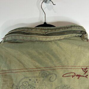 Desigual Embroidered Distressed Green Hooded Jacket Sz M Eclectic Edgy Artsy