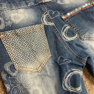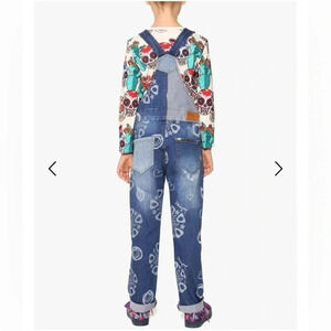 Desigual Girls Jeans "Pubill" - gorgeous faded denim overall jeans with beautiful print and embroidered details with sequins, large pockets. Comfortable fit. She will love wearing them!