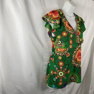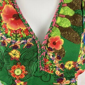 Desigual Green Floral Island Boho Blouse Women's Size S