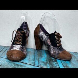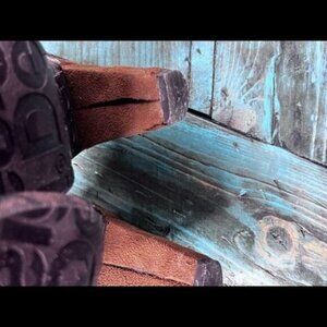 Pre owned. Does have some wear on the toes of the shoes. Also, the fabric on the heels slightly lifting. Both flaws pictured,