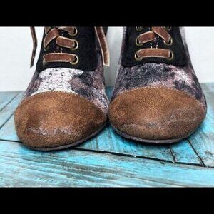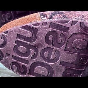 Pre owned. Does have some wear on the toes of the shoes. Also, the fabric on the heels slightly lifting. Both flaws pictured,