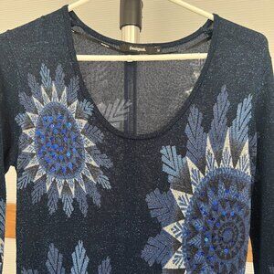 Desigual Helen Mandala Sequin Print 3/4 Sleeve Knit Mini Scoop Neck Dress Sz M