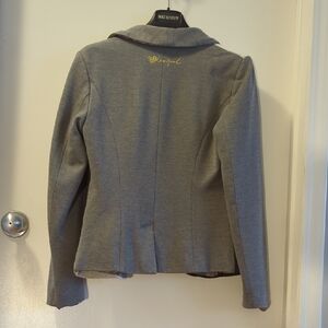 Stylish patchwork jacket featuring a blend of gray tones. Perfect for adding a unique touch to your wardrobe.