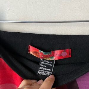 Vibrant A-line skirt with bold circular patterns. Features shades of red, pink, and purple. Perfect for a statement look.