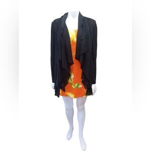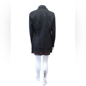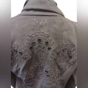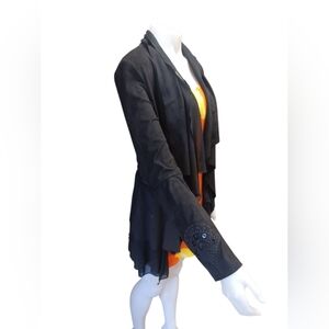 Long sleeves with a waterfall opening, this unique jacket features decals on the cuffs and back, great season transition jacket.