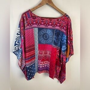 Desigual PERUGIA Boho floral embroidered Batwing v-neck flowy Blouse small