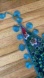 Bold Desigual scarf with red swirls and teal accents. Eye-catching and artistic.