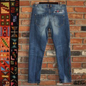 Desigual "The LOVE" Embroidered Denim Boyfriend Fit Jeans 32