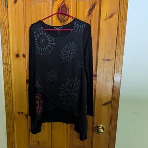 Lovely black layered top, stretch sleeves, asymetrical hem.