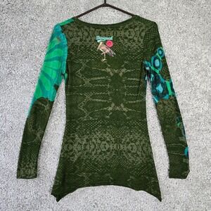 Desigual Women Long Sleeve Top Size XS Floral Handkerchief Hem Artsy Retro Bold