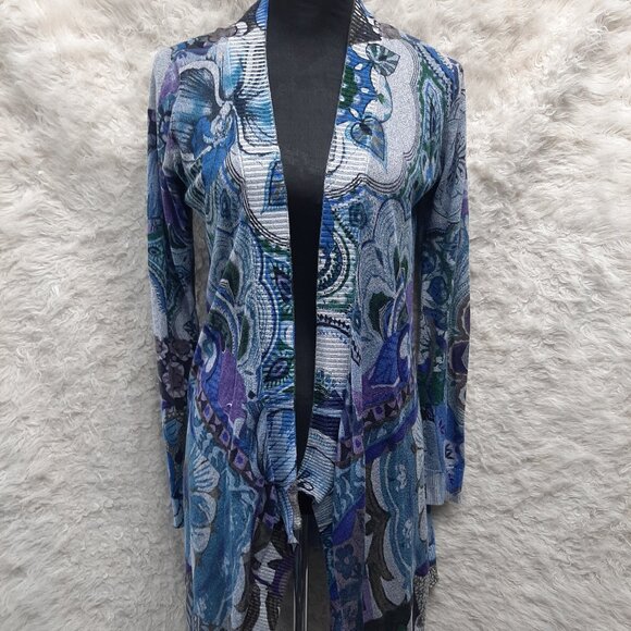 Check out this Desigual Women's Blue Floral Boho Open Front Cardigan in very great pre-owned condition, no rips or stains on it.