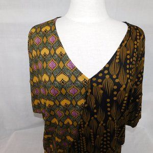 This Lovely Womens Medium Desigual Yolande split print Top with surplice neckline is in Excellent clean condition. Top is 100% Viscose - Machine wash cold inside out - air dry. Boxy Flowy fit.