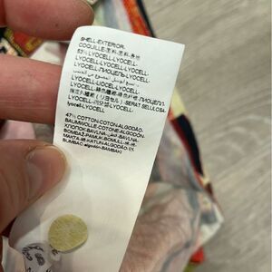 Tunic with multiple colorful pattern throughout the garment and different pattern variation on the 3/4 inch sleeves.