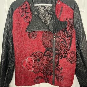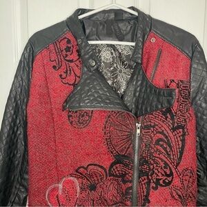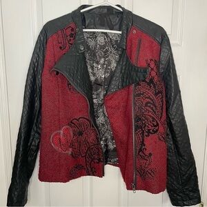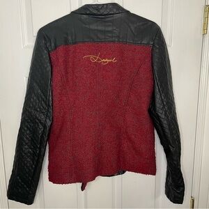 Desigual Wool Blend and Vegan Leather Black and Red Moto Jacket 42