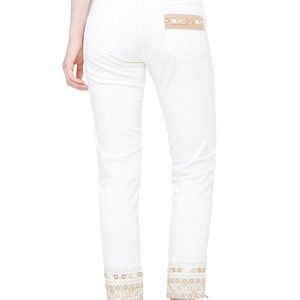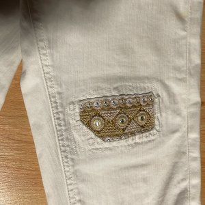 Desigual white pants with gold embroidery, size 28, amazing style, mint condition, love it again. Check my closet for more.