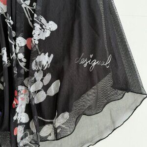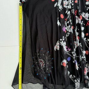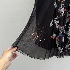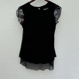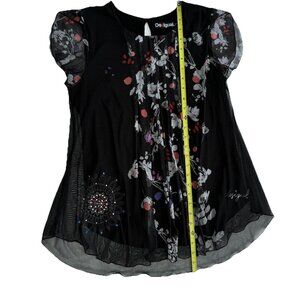 Desigual women's Top Sheer Embellished Rhinestones Floral Black Small