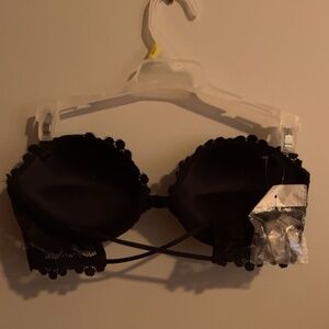 SHEIN DesireSculpt Lace Strapless Front Closure Half Cup Bra with Underwire, Lifts and Supports Bust, Removable Clear Straps Included. Size: 34B