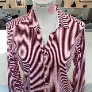 Desoto Eve Collared V Neck Striped Button Down Cotton Blouse Red Wht Sz 36 NWOT