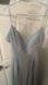 This is a truly beautiful dusty blue dress in perfect condition. So flattering with the drop sleeves and slight v neck. Built in bra. Dessy Group dress in "mist". Worn once for a few hours. Very flattering, comfortable and light and airy. I am 5'7 and wore flats for reference.