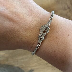 This stunner is from Mallorca Spain. I bought it the first time I was there circa 2000. There is a teeny stamp on the back. I used a magnifier app to try and see what it says but it’s impossible. The chainlink on this is gorgeous. I’ve enjoyed it for a long time and now I am ready to part with it and connect with a new owner. Price firm because of posh cut. Measures approx 7.5” long