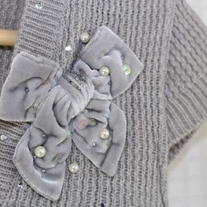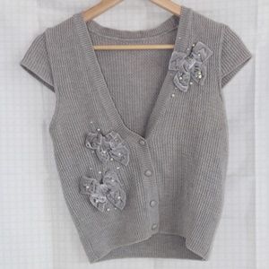 Unique grey knit vest with velvet bows with beading. No tags but it fits like a small. Great condition.