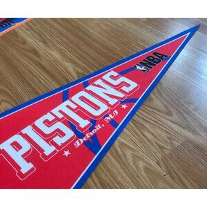 The Detroit Pistons NBA Team Felt Pennant is a vibrant piece for sports enthusiasts, showcasing team pride. Its durable felt material ensures longevity, making it suitable for display in various settings. The pennant's design is bold, featuring the team's name prominently.