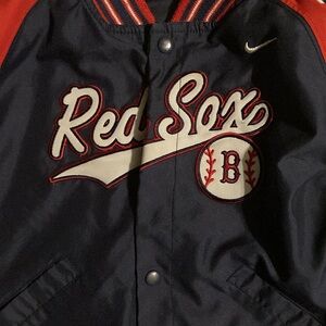Detroit Red Sox blue and red snap button jacket. In great condition. No marks or anything in it. It has pockets in the front. There is a bit of fuzziness on the cuff.