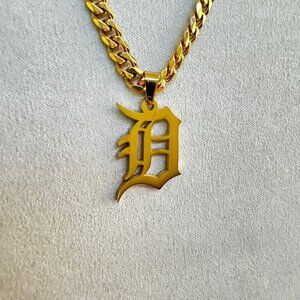 Detroit Tigers Necklace - Detroit D - 3mm Rope - 22" Gold Chain - MLB - Baseball