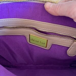 VGUC sequin clutch by Deux Lux used once for a wedding guest outfit. Also posting a Barbie hot pink one that is NWOT and never used. I couldn’t decide at the boutique and I was away on a trip and knew I couldn’t have buyers remorse so I bought both. Very cute. I would still hang on to these but my days of weddings now that I am older are fewer and far between. Would rather connect this with someone that could use it. Sequin stripes are on both sides of the clutch. Zippered interior pocket for safeguarding cards, phones and keys. Message if you have questions.